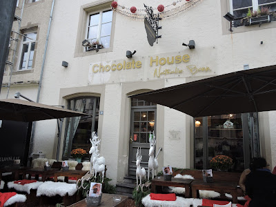 Mesmo em frente ao palácio há uma chocolataria incrível chamada “Chocolate House” onde tomamos um chocolate quente muito original. O chocolate vem num pau, tipo gelado que mergulhamos num copo de leite quente. O resultado é divinal!