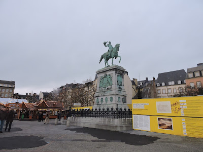 Voltando para a zona da Place Guillaume II encontramos outra praça - Clairefontaine onde tem uma bonita escultura da Duquesa Charlote no centro, e atrás dela estão os ministérios da cidade.