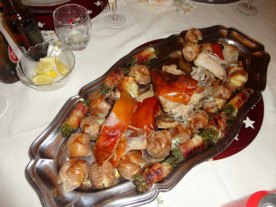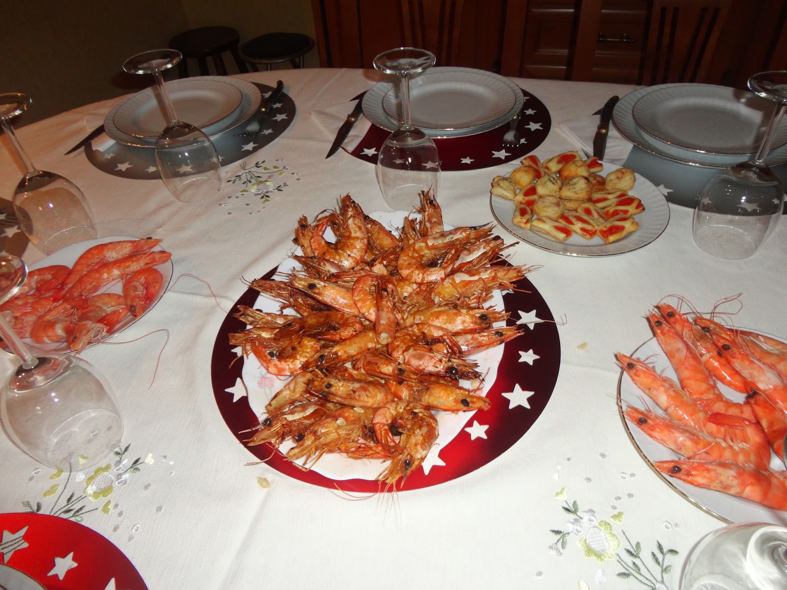 No dia 31.12 ficamos por casa a ajudar nos preparativos para o jantar que, ao contrário de Portugal, não incluí os doces típicos da época (rabanadas, bolo-rei, pão-de-ló, etc.). A ementa foi composta por umas deliciosas gambas, canapés, foie-gras e leitão como prato principal.