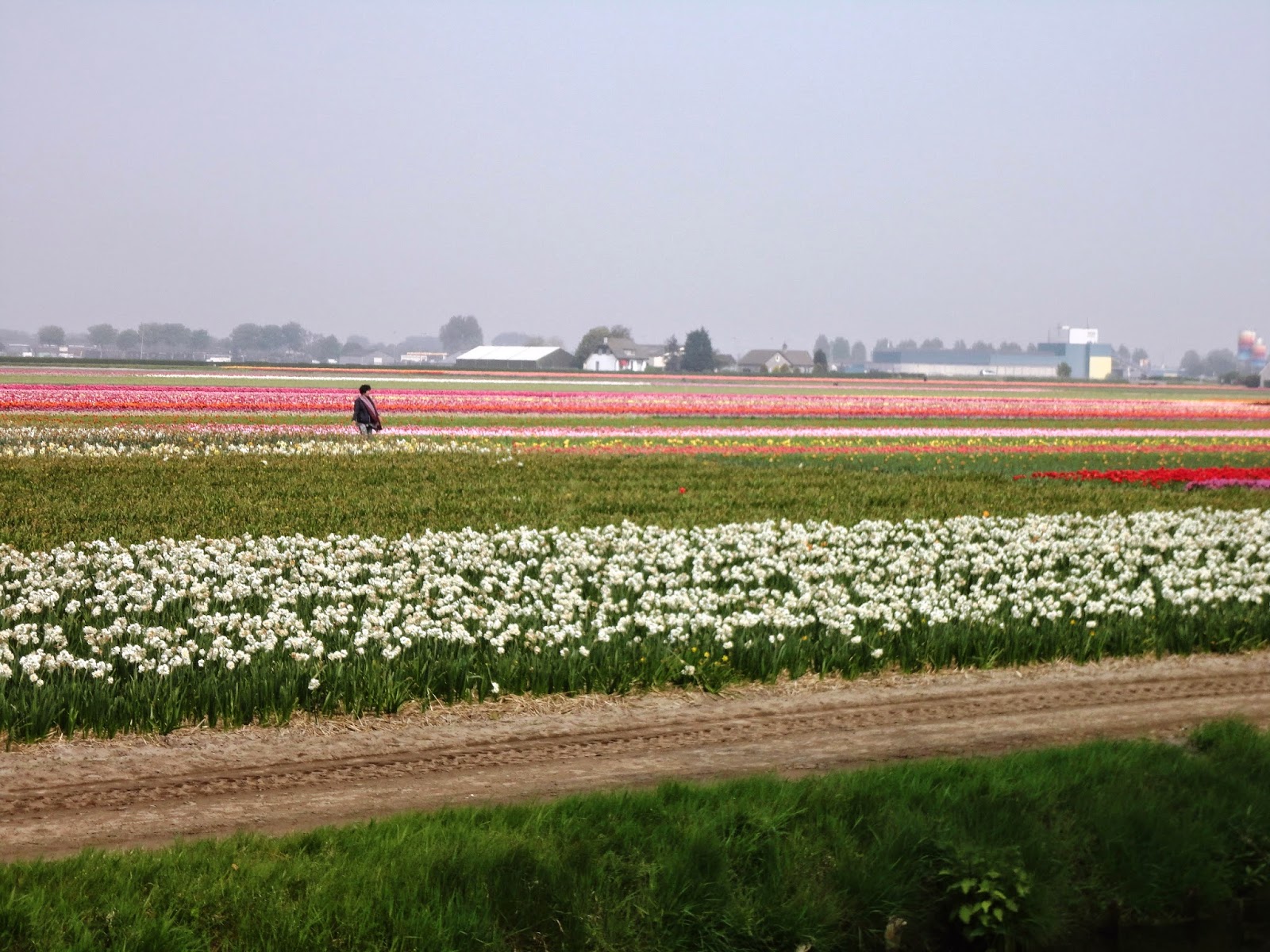 Esta zona da Holanda é também conhecida pelos enormes campos de plantações de tulipas que formam uma espécie de arco-íris com diversas cores. Apesar de algumas tulipas já terem secado e outras ainda estarem a florescer, deu para ver um pouco desse efeito da plantação de bolbos.
