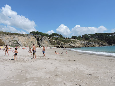 Saímos do Porto de manhã com a intenção de chegar a Sanxenxo à hora do almoço. Fomos directos à praia Paxarinhas, uma pequena praia escondida entre as rochas, muito recomendada por amigos em especial, para crianças.