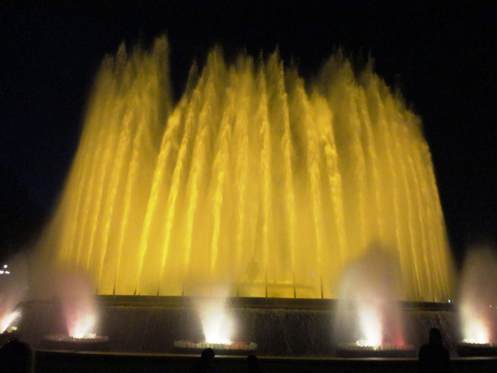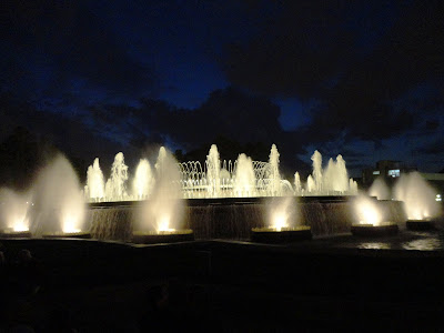 Depois lá fomos para junto da fonte onde já uma multidão de gente a envolvia para assistir ao soberbo espectáculo de água e cor, ao ritmo da música.